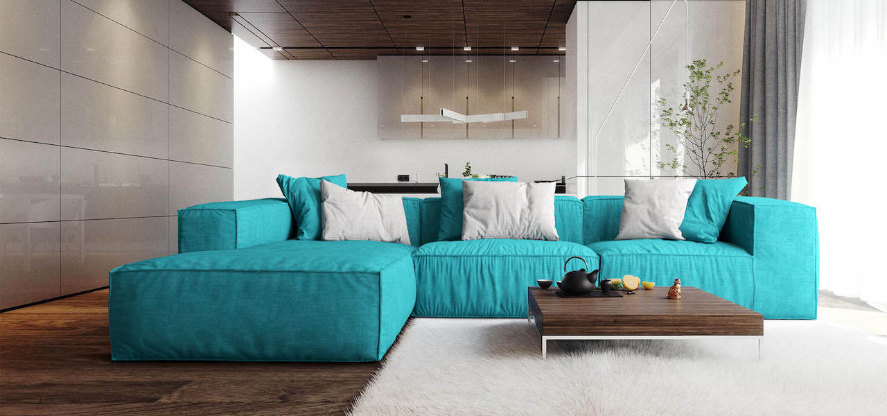 Бирюзовый диван в интерьере