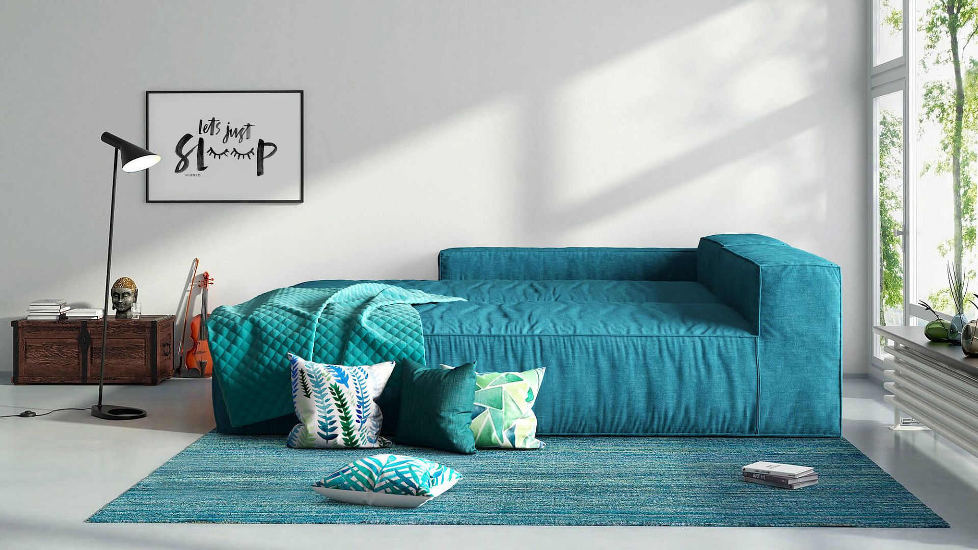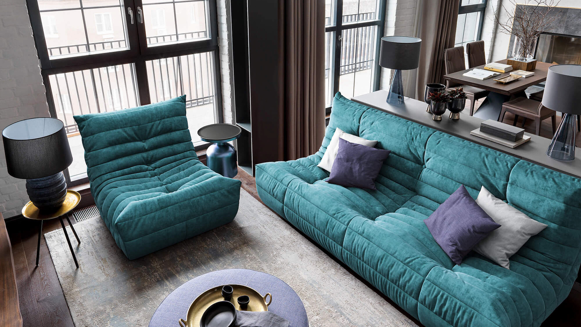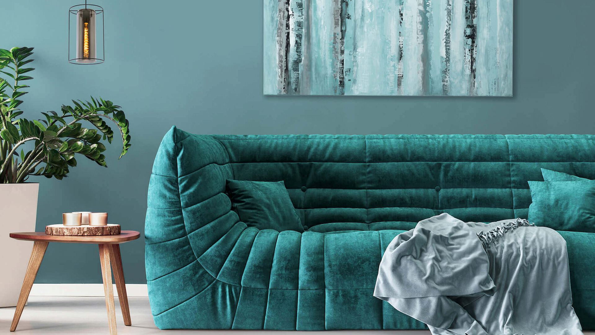 Как обыграть бирюзовый диван