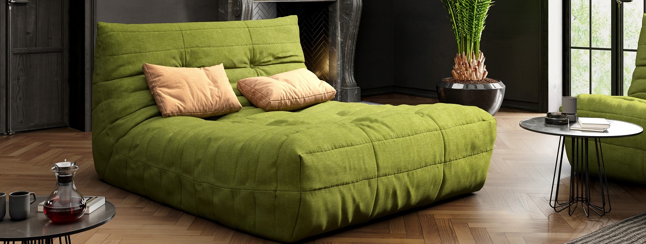 Обычно наполняют интерьерные пространства сов и интровертов. Солидные кресла, диваны и диванища темных оттенков отлично чувствуют себя в гостиных, кабинетах, библиотеках, офисных фойе, кофейнях и барах. В качестве материала отделки рекомендует выбирать гладкие, матовые ткани или экокожу — они не притягивают пыль, на них незаметны складки и царапины.Яркие диваны
