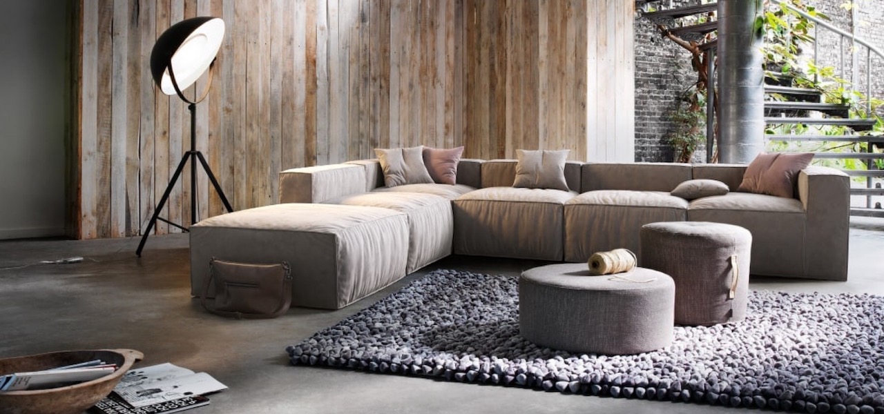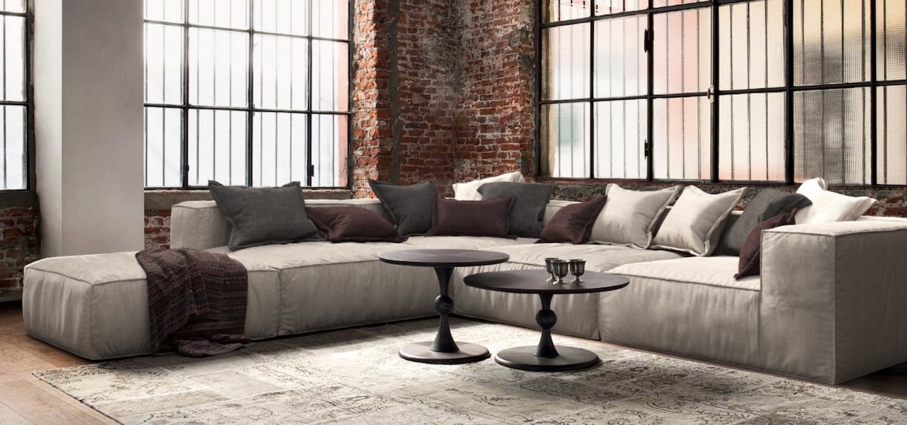 - Серый диван в стиле лофт