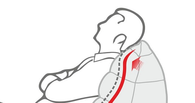 Верхняя часть спинки имеет чуть скругленную форму, образуя специальный мягкий обод, заменяющий собой подушку. Это позволяет комфортно положить голову на верхнюю кромку и расслабиться.