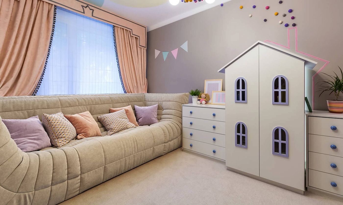Часто ее используют в детских комнатах благодаря большому количеству цветов и легкой чистке. Ведь дети любят, что-нибудь испачкать ;)