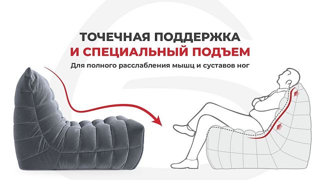 Таким образом кресло и диван ДеФранс точечно поддерживают тело в области ног, поясницы и шеи.