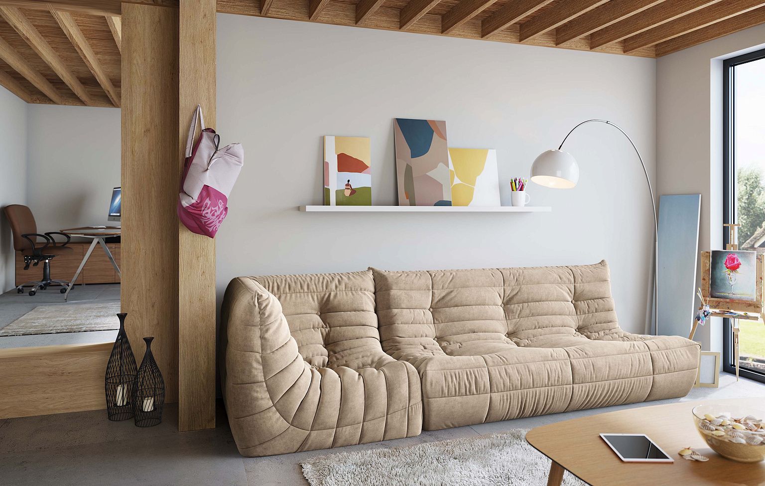 Создан из пен средней плотности. Верхний слой и специальные вставки в чехол сделаны из специальных пен. Предназначен для комнат отдыха, гостиных и Lounge zone.Каркас создан из вспененного пластика, что придает изделию дополнительную прочность, оставляя при этом его очень легким.
