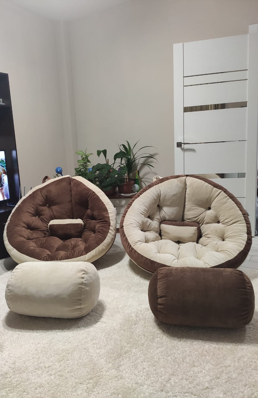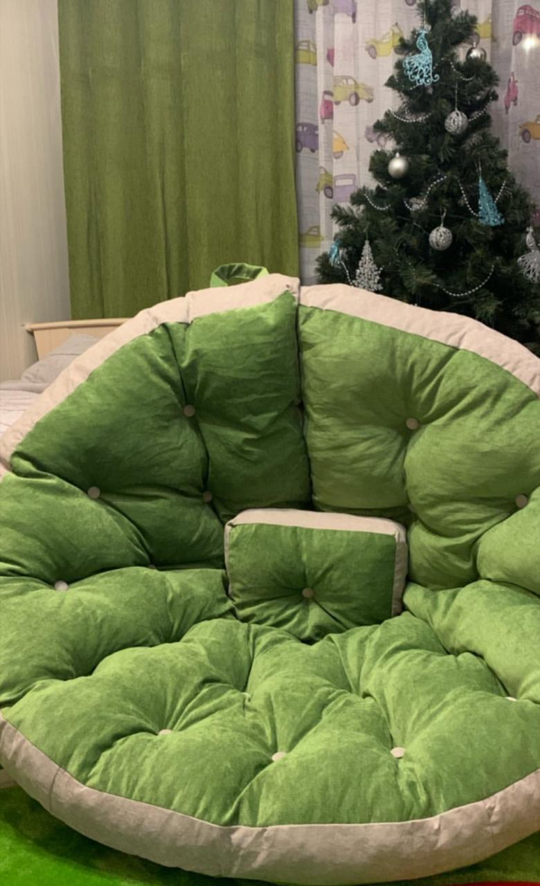 ДВА кресла одинакового размера можно соединить между собой липучками в большой круглый матрас.