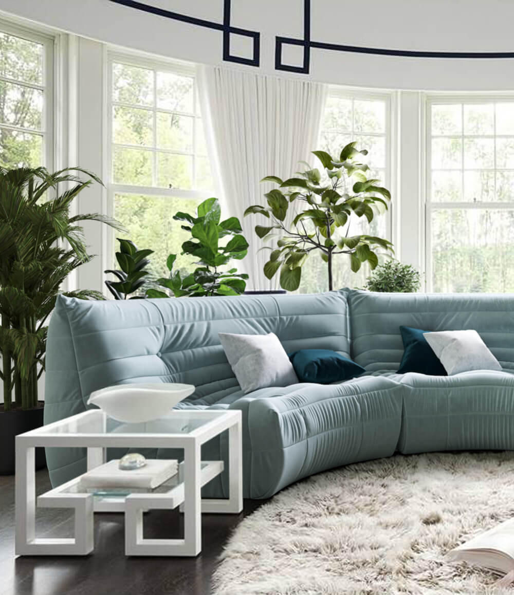 Модели Фри, Драм, Фри Лаунж - не закругляются, но легко меняют размеры и углы, чтобы дополнить угловой эркер, нишу или зонировать комнату.
