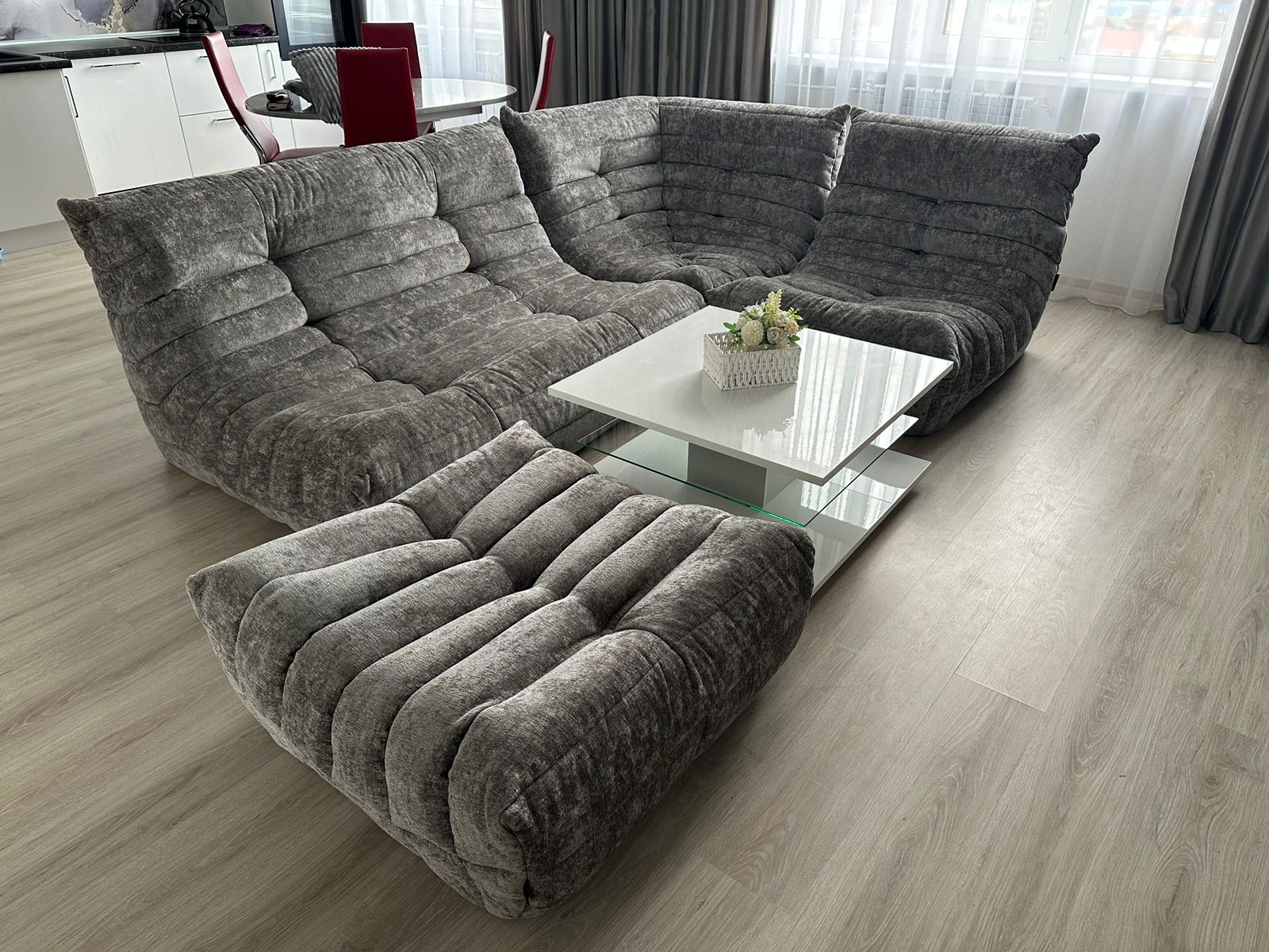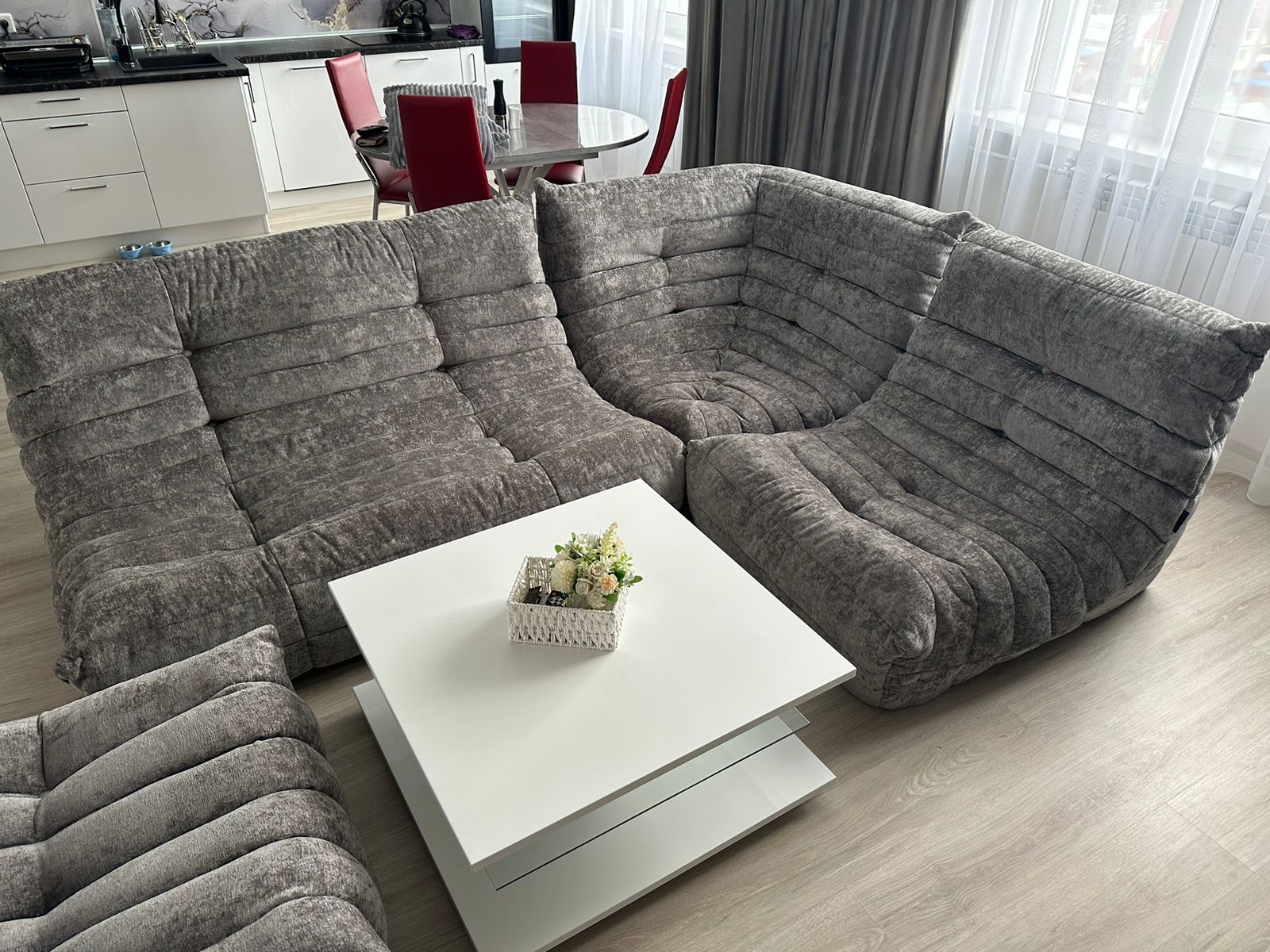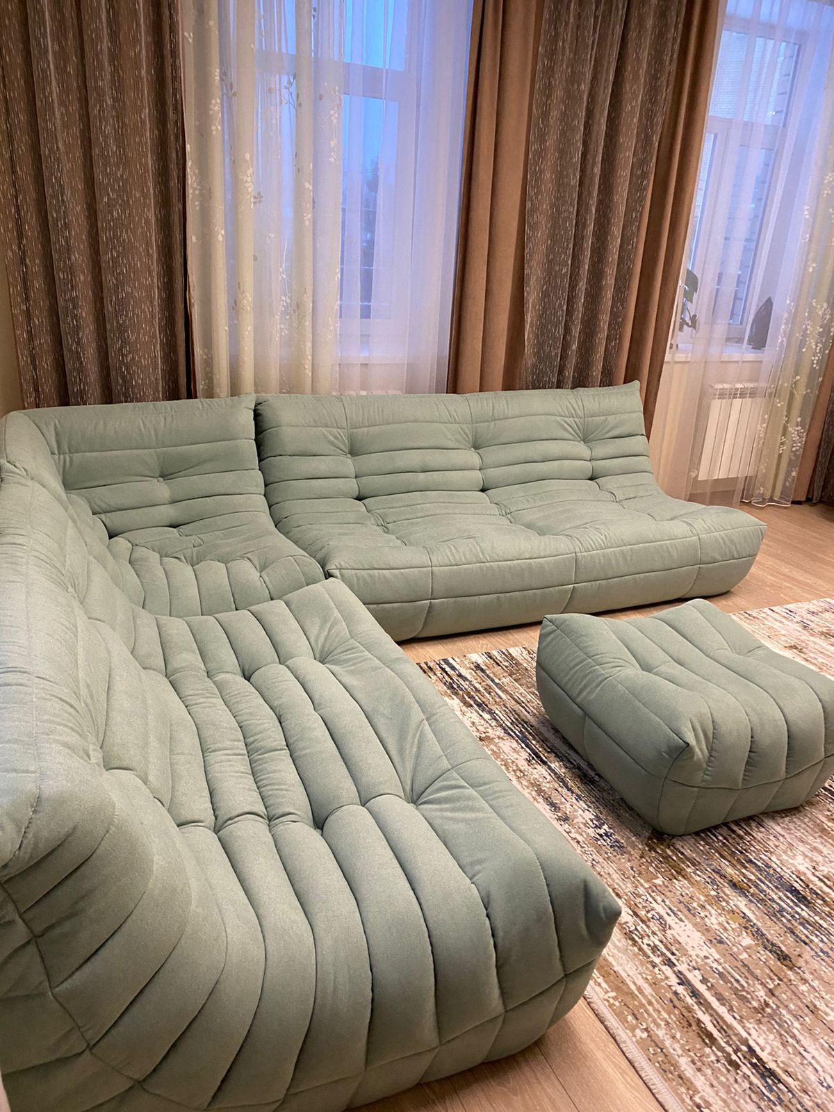 Вы без труда переставите или передвинете отдельные модули в нужное место. Итоговый вес всегда зависит от размера дивана, выбранной конфигурации и ткани для обивки.