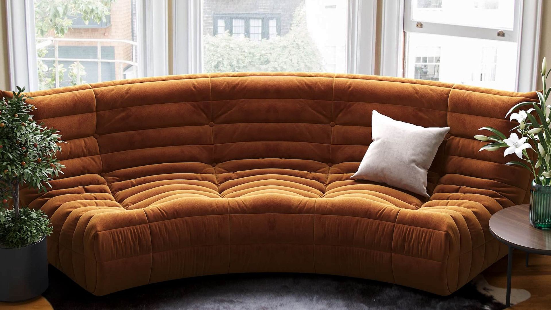 Идеально впишется в угловые эркеры или нестандартные углы.