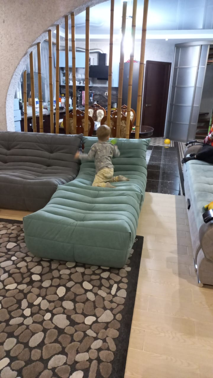 У наших диванов нет ни одного прямого или острого угла, твердых ножек или подлокотников. Все материалы сертифицированы и абсолютно безопасны для человека и животных.
