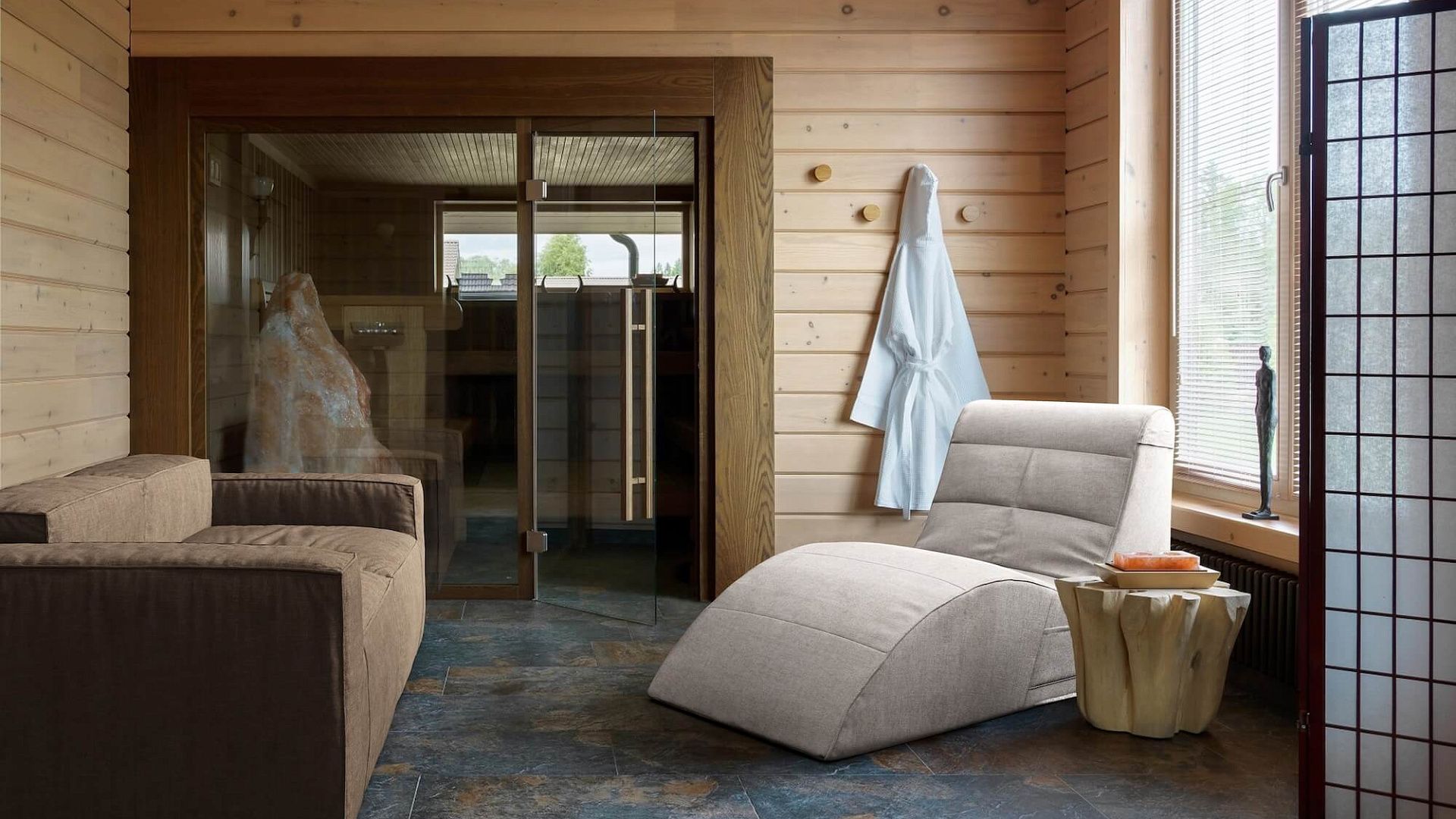 На веранде, в доме, в сауне