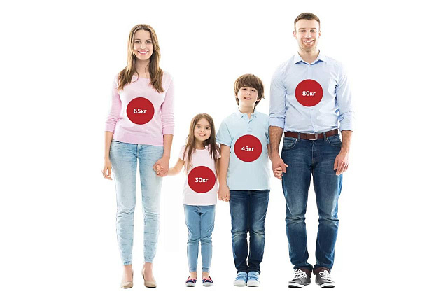 Например, в семье 4 человека, нужно определить вес каждого: