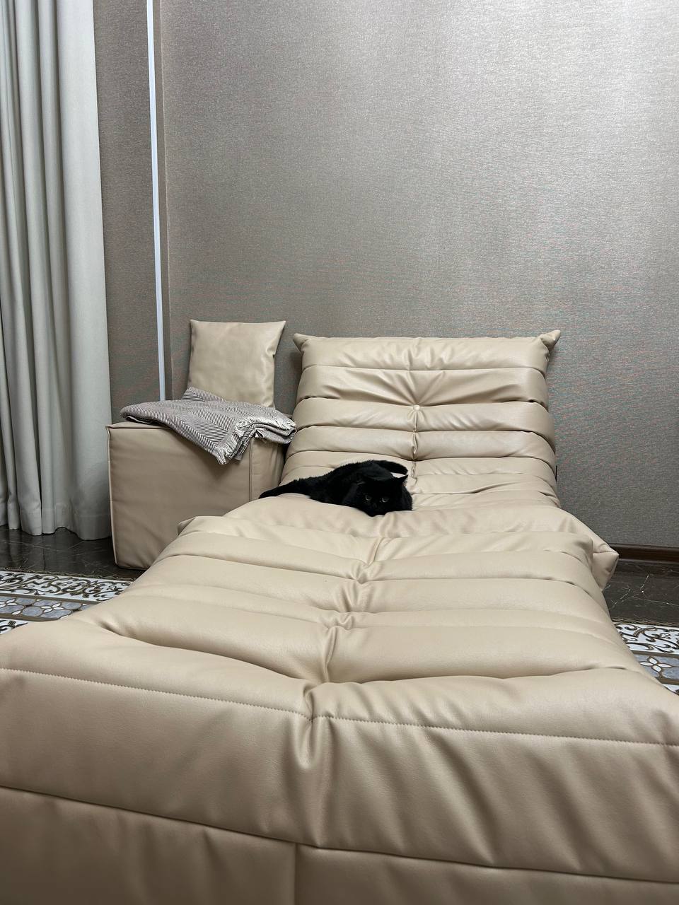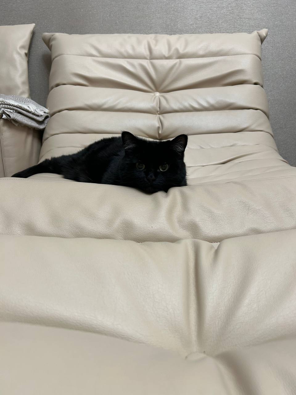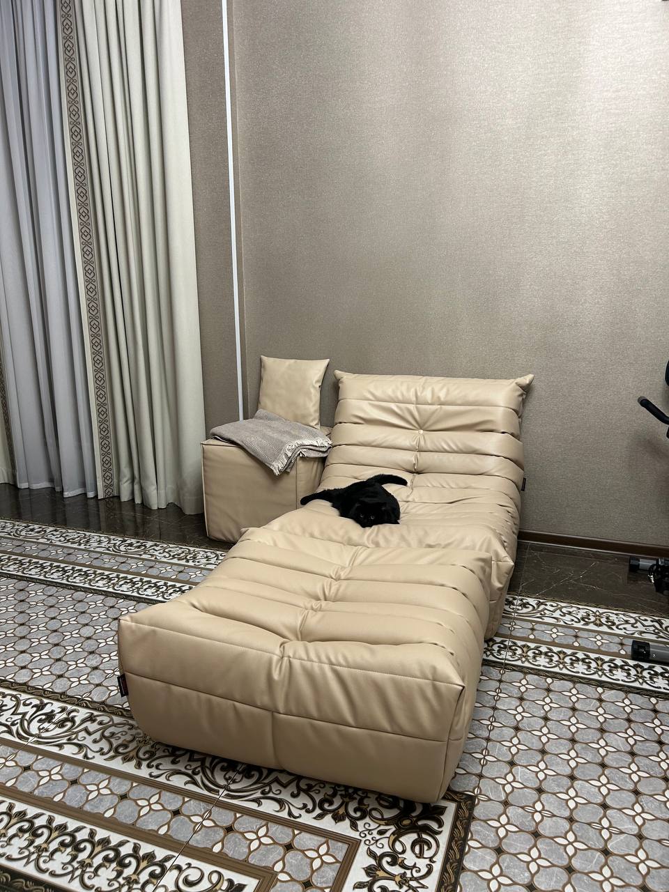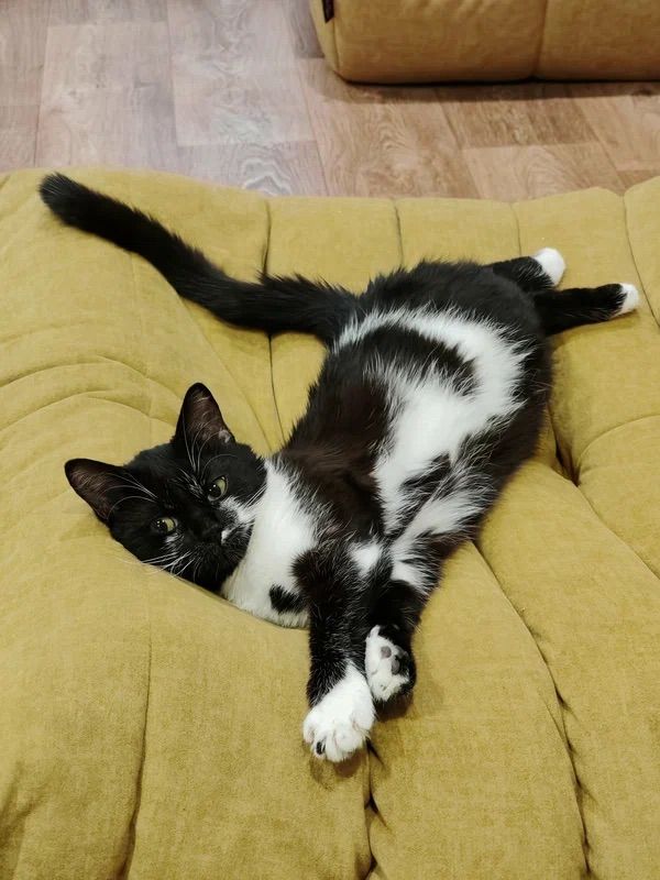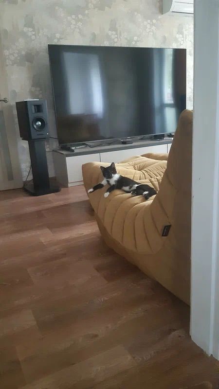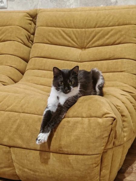 Благодаря менеджеру Юлии, были заказаны кресла с пуфами в нужных размерах, а пока они изготавливались, в нашу жизнь ворвалась нынешняя хозяйка квартиры - чёрно-белая кошка, которая с самого малого возраста оккупировала кресла, и устроила им полноценный тест-драйв.