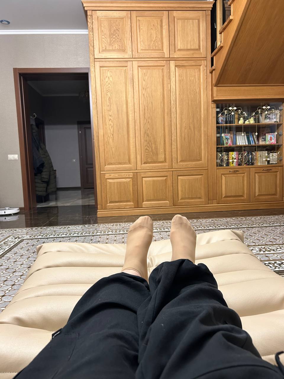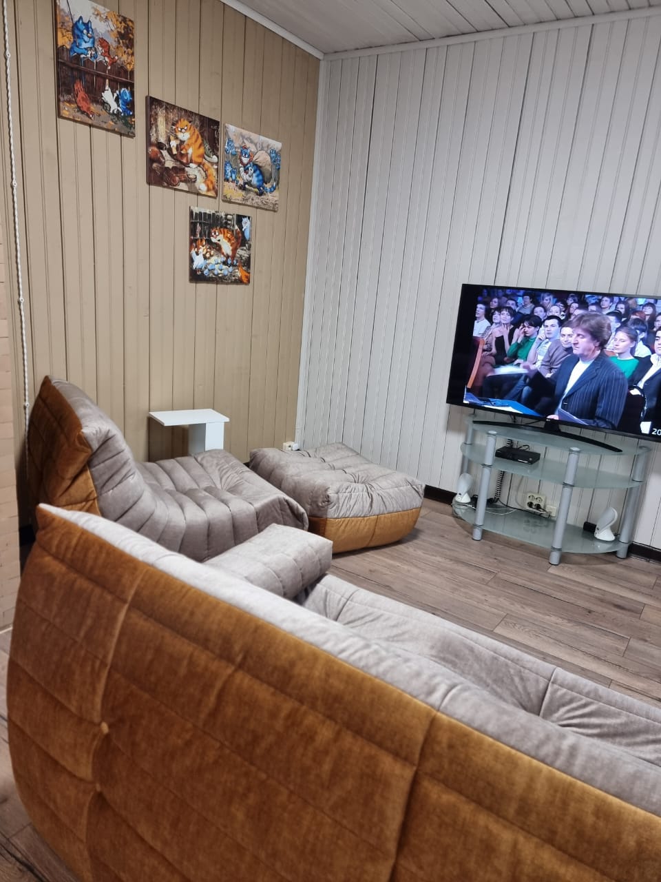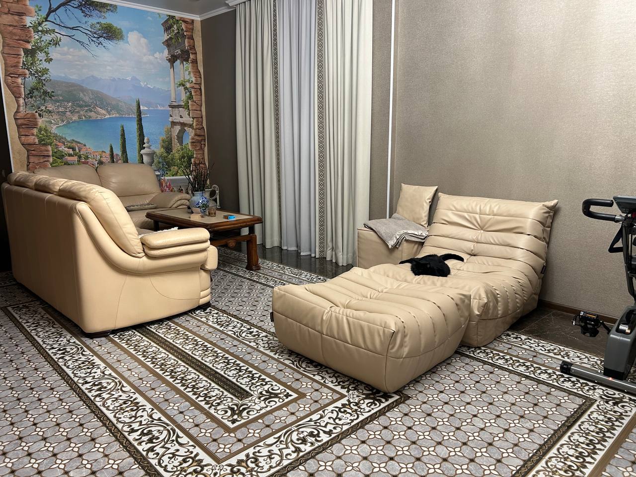 Благодаря менеджеру Юлии, были заказаны кресла с пуфами в нужных размерах, а пока они изготавливались, в нашу жизнь ворвалась нынешняя хозяйка квартиры - чёрно-белая кошка, которая с самого малого возраста оккупировала кресла, и устроила им полноценный тест-драйв.