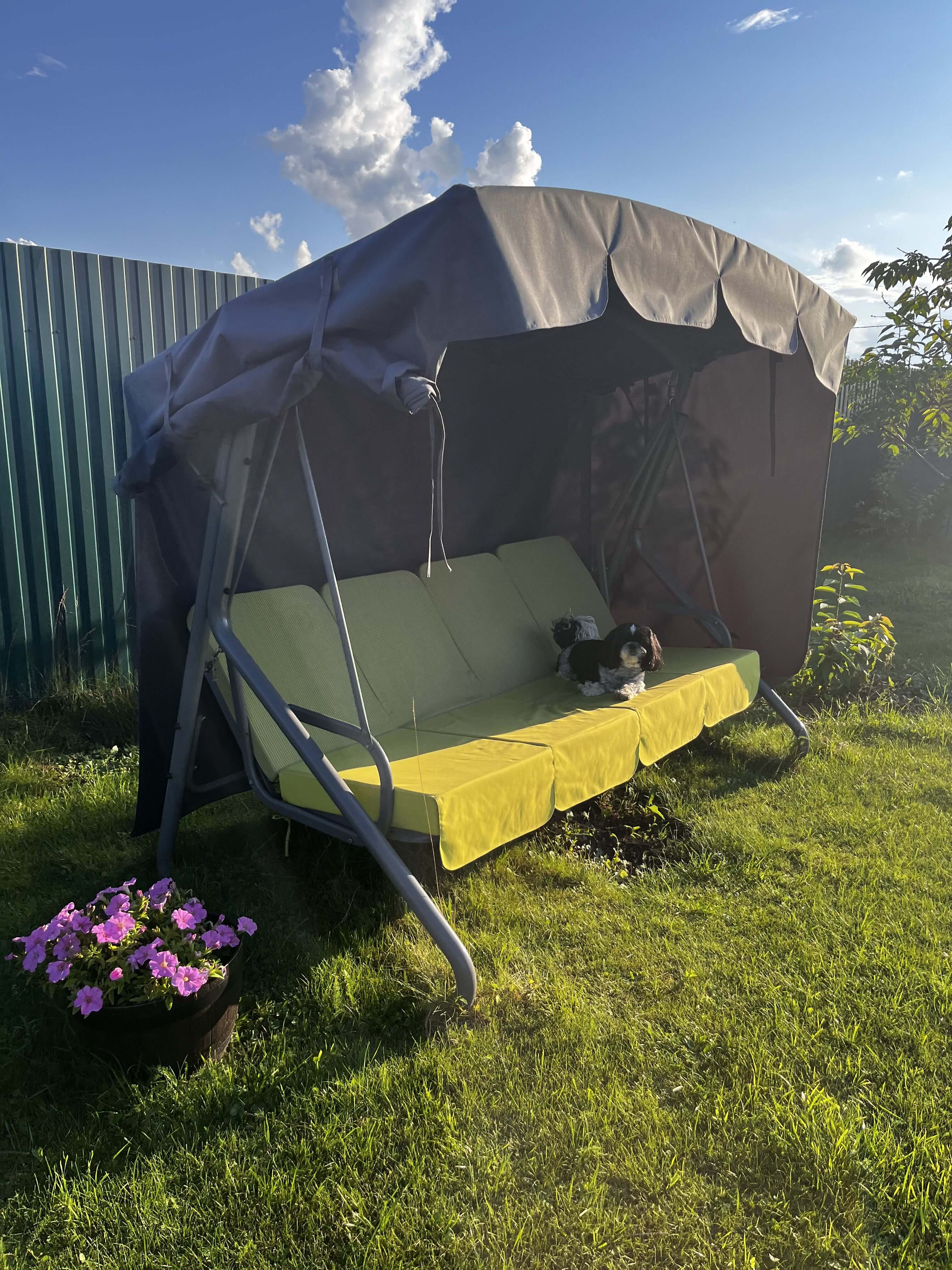 2. Удобно-лежать (у нас раскладываются качели),сидеть и просто философствовать,продолжительное время)
